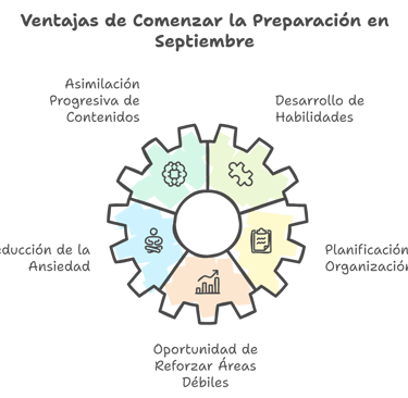 Iniciar la preparación en septiembre permite a los estudiantes abordar los temas de manera más relajada y profunda. Esto facilita la comprensión de conceptos complejos y la conexión entre diferentes áreas del conocimiento, lo que es esencial para el examen.