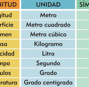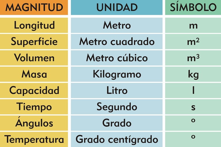 Volumen: Mide el espacio que ocupa un objeto. La unidad más usada es el metro cúbico (m³).